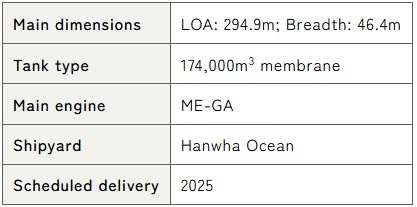 This is the fifth contract, following a time charter contract for four LNG carriers that were signed for JERA. The vessel will be built at the Geoje Shipyard of Hanwha Ocean Co., Ltd. (Headquarters: South Korea), and is scheduled for delivery in 2025. It will be managed by MOL and will transport LNG for JERA. The new vessel will be equipped with the cutting-edge MAN Energy Solutions engine (ME-GA), which improves fuel consumption efficiency, with specifications that enhance its environment friendliness, compared to conventional LNG carriers. Through this long-term charter contract, MOL will contribute to the realization of a stable supply of LNG in partnership with JERA. Outline of the vessel