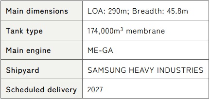 This is the sixth contract, following a time charter contract for five LNG carriers(Note 1) that were signed for JERA. The vessel will be built at the Geoje Shipyard of SAMSUNG HEAVY INDUSTRIES CO., LTD (Headquarters: South Korea), and is scheduled for delivery in 2027. It will be managed by MOL and will transport LNG for JERA. The new vessel will be equipped with the cutting-edge MAN Energy Solutions engine (ME-GA), which improves fuel consumption efficiency, with specifications that enhance its environment friendliness, compared to conventional LNG carriers. Through this long-term charter contract, MOL will contribute to the realization of a stable supply of LNG in partnership with JERA. (Note 1) For details please refer to the following press release. June 14, 2023: MOL and JERA Signs Long-Term Charter Deal for Newbuilding LNG Carrier Outline of the vessel