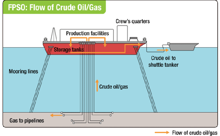 (Note 3) DP Shuttle tankers Shuttle tankers transport crude oil from FPSOs or other offshore production facilities to onshore terminals. These tankers are equipped with dynamic positioning systems (which electronically control the ship's maneuvering to maintain its position), offshore loading equipment mounted on the bow, and so on to ensure safe loading operations without anchoring, even under severe sea, weather, and tide conditions. Mitsui O.S.K. Lines, Ltd. press release