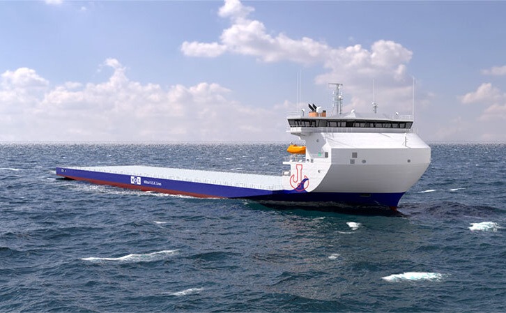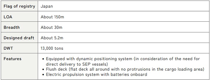 The vessel is scheduled for delivery in the spring of 2026, and will then engage in the coastal transport of offshore wind turbine foundations from JFE Engineering's manufacturing base in Kasaoka-shi, Okayama Prefecture to offshore wind turbine construction sites in Japan. In April, JFE Engineering began production of monopiles used to build the foundation for offshore wind power generation. MOL Coastal Shipping, Ltd. (President: Hiroshi Kobayashi; Head Office: Minato-ku, Tokyo) will operate the vessel under the management of MOL Drybulk. The new ship will feature the latest design already proven effective in the European market. It will be equipped with a dynamic positioning system (DPS) and offer higher weather resistance than non-self-propelled barges, providing direct delivery of cargo to self-elevating platform (SEP) vessels at offshore wind power construction sites. The module carrier has a flat deck so that it can directly load wind turbine components, such as monopiles, towers, blades, nacelles, and floating foundations, from the stern and sides of the vessel using multi-axle trucks and so on. As Japan's offshore wind power generation progresses, demand for wind turbine components in domestic transport is expected to increase in a variety of scenarios. MOL Drybulk currently operates a 3,700-ton class module carrier on a time charter basis to transport onshore and offshore wind turbine components, plant cargo, marine equipment, and so on in waters off the coast of Asia. By leveraging its expertise in operating this module carrier, it will continue to meet customers' marine transport needs. The MOL Group will contribute to the realization of a net-zero emissions society in line with the MOL Group Environmental Vision 2.2, by leveraging its accumulated experience and expertise in offshore wind power generation-related businesses. Module carrier profile