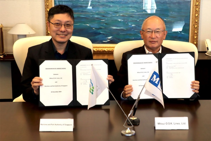 Tokyo - November 26, 2024 Mitsui O.S.K. Lines, Ltd. (MOL; President & CEO: Takeshi Hashimoto) today announced that on November 26, it signed a comprehensive memorandum of understanding (MoU) with the Maritime and Port Authority of Singapore (MPA) (Note 1) to deepen cooperation in the fields of decarbonization, digitalisation, and human resources development. MOL and MPA have been cooperating in various initiatives to decarbonize the maritime industry, the new agreement will further promote these initiatives in a wide range of fields. MPA Chief Executive Teo Eng Dih said: "This MoU reaffirms MPA and MOL's longstanding collaboration. As a maritime hub port, supported by our innovation and research ecosystem, MPA is working closely with industry and tripartite partners to support digitalisation, cybersecurity, decarbonisation and manpower capabilities. We look forward to MOL's expansion of activities, tapping on both our experience and expertise, to develop scalable solutions for the Singapore-Japan Green and Digital Shipping Corridor and the wider maritime community." MOL President & CEO Takeshi Hashimoto commented: "We have been focusing on the fields of decarbonization, digitalisation, and human resources development, which we have decided to deepen cooperation with MPA this time. MPA is committed to working hard to create a sustainable maritime industry in Singapore, the hub of the maritime industry. We pay our respect to MPA for its enthusiasm and energy. The fields of bilateral cooperation are also a challenge for the maritime industry as a whole, and I hope we can increase the feasibility by working together as like-minded people. We are confident that the establishment of this comprehensive cooperative relationship will contribute to the maritime industry in general." Specifically, the scope of the MoU covers the following: 1. Collaboration in the field of decarbonization in the maritime industry in general. Mutual collaboration to establish a supply system for next-generation fuel sources such as methanol, ammonia, and hydrogen. The collaboration will also include study on the use of wind technology. 2. Digitalization and maritime innovation. Improving voyage management and efficiency of transport operations through digitalization, including development of cybersecurity, collaboration on autonomous vessel trials, and nurturing marine innovation ecosystem that emphasizes collaboration with local startups. 3. Joint development of maritime human resources. Grow and enhance manpower capabilities, including grooming seafarers and shore-based workforce. MOL will continue its group-wide concerted effort, in close cooperation with MPA and other major maritime sectors, to achieve sustainable GHG net-zero emissions and contribute to the realization of a decarbonized society. Recent cooperation with MPA • MOL participates in the Green & Digital Shipping Corridors (GDSC) The MPA is building strong partnerships with national port stakeholders to accelerate decarbonization in the maritime industry, with the goal of promoting the development and broad adoption of next-generation fuels and technologies. MOL joined this MPA-led corridor and participated in discussions among major maritime organizations in both public and private sectors and across borders. • MOL participates in the Maritime Energy Training Facility (METF) In September 2024, MOL joined MPA's initiative to promote training for seafarers involved in next-generation fuel transport. This aims to provide a new facility that will offer more seafarers with training to handle next-generation fuels such as ammonia, which reduces carbon emissions. (Note 1) The Maritime and Port Authority of Singapore (MPA) was established in 1996 to develop Singapore as a global hub port and international maritime centre and to advance and safeguard Singapore's strategic maritime interests. MPA serves as the port authority, planner and national maritime representative for the country's port and marine development. It promotes port safety, environmental protection, and the growth of the maritime industry; expands maritime clusters; promotes research and development and human resources development, and champions digitalisation and decarbonisation efforts at regional and international for a such as the International Maritime Organization. Website: www.mpa.gov.sg