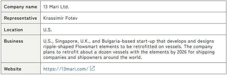In addition, because all kinds of ships, both newbuildings and in-service vessels, can be retrofitted with these elements, and retrofitting does not require a large capital investment or retrofitting work, they can be used in various fields of the shipping industry, such as dry bulk, energy, and product transport, representing an environmental solution that can be taken now. They may prove especially effective in the small and medium-sized ship sector, where it has been difficult to introduce wind propulsion systems due to the limited device and equipment layout space on board, and in the dry bulk field, where the introduction of next-generation fuels has been limited due to restrictions on the design and development of new ship types and ports of call. MOL seeks to promote GHG emission reductions and build momentum in the entire maritime industry for the introduction of new technologies in these fields, by playing a role in the development and introduction of new technologies as a first mover. MOL has established the "MOL Group Environmental Vision 2.2" and set the goal of achieving net-zero GHG emissions by 2050, with "further introduction of energy-saving technologies" as a key strategy to achieve the target. By investing in 13 Mari and supporting its technology development, MOL will promote this key strategy and contribute not only to the reduction of GHG emissions from the group companies, but also to the reduction and decarbonization of society as a whole. (Note 1) Outline of 13 Mari