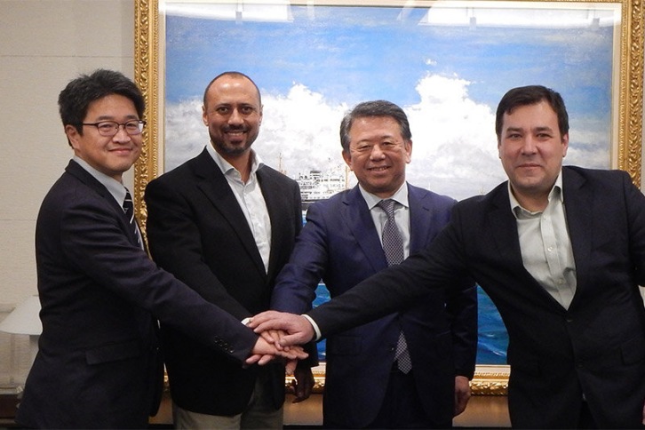 At the meeting after the decision to investment> From left: MOL Dry Bulk Business Strategy Division General Manager Shinichi Asahina; 13 Mari Co-Founder and Chief Business Officer Gaston Petrocelli; MOL Deputy Vice President Hirofumi Kamata; and 13 Mari Founder and Chief Executive Officer Krassimir Fotev. Image by MOL. Mitsui O.S.K. Lines, Ltd. press release