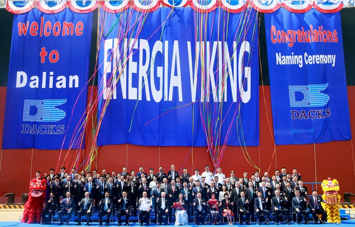 Equinor Senior Vice President Anne Mai Hatlem, MOL President & CEO Takeshi Hashimoto, and MOL Energia Pte. Ltd. Managing Director Miki Ogura were on hand for the event, as the Energia Viking was named in front of an enthusiastic audience.