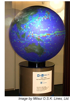Weathernews cooperates fully with MOL to ensure the safe management of MOL-operated vessels. The FMS.Globe is placed in the reception area on the seventh floor of the MOL Head Office (Minato-ku, Tokyo). This is the first such comprehensive system introduced in Japan. It stands as a symbol of MOL's commitment to safe operation which is the highest priority for the entire MOL Group, and visually conveys a message of both companies' approach to safety management.