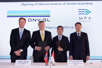 The MOU was signed between Dr Henrik Madsen, DNV GL's Group President and Chief Executive Officer, and Mr Andrew Tan, MPA Chief Executive. It will promote maritime R&D in the following areas: • Liquefied natural gas (LNG) research and technology, covering both risk assessment and safety, and simulation study and training • Green Ports, an examination of the potential environmental gains to be made through the use of energy saving and emission reduction technology in ports, in terms of both infrastructure, processes and equipment and vessels • Marine environment and resources, projects which are designed to cut emissions and boost fuel efficiency, through retrofitting and improved operational maintenance, and • Organisation of maritime-related thought leadership forums to promote Green Shipping, Green Port and Green Technology in the Singapore maritime community "Singapore has emerged as one of the key centres for innovation in the shipping world, especially in terms of promoting technologies and systems which develop and promote green outcomes" said Dr Henrik Madsen. "We have built up a relationship with the MPA over the past several years, as we have both jointly and separately championed projects which have sought to reduce emissions and improve fuel efficiency in shipping, and this MOU will help us to further our relationship. Indeed, the MOU is a reflection of the emphasis we place on innovation and R&D at DNV GL. We are making a significant and sustained group-wide commitment by investing in the future of our industry. We will continue to invest around 5% of annual revenue to R&D with one fifth of that marked for long term projects with a transformative effect, and have hubs of innovation around the world. This is at the heart of our goal of making the industry safer, smarter and greener." Mr Andrew Tan said, "The signing of this MOU signifies a shared vision to drive our maritime industry research efforts. It will also help position Singapore as a centre of excellence for maritime research. I'm confident that this partnership will grow stronger and contribute to the overall growth of the maritime sector." About DNV GL Driven by its purpose of safeguarding life, property and the environment, DNV GL enables customers to advance the safety and sustainability of their business. DNV GL provides classification and technical assurance along with software and independent expert advisory services to the maritime, oil & gas and energy industries. It also provides certification services to customers across a wide range of industries. Combining leading technical and operational expertise, risk methodology and in-depth industry knowledge, DNV GL empowers its customers' decisions and actions with trust and confidence. The company continuously invests in research and collaborative innovation to provide customers and society with operational and technological foresight. Established in 1864, DNV GL operates globally in more than 100 countries with over 16,000 professionals dedicated to helping their customers make the world safer, smarter and greener. About the Maritime and Port Authority of Singapore (MPA) The Maritime and Port Authority of Singapore (MPA) was established on 2 February 1996, with the mission to develop Singapore as a premier global hub port and international maritime centre (IMC), and to advance and safeguard Singapore's strategic maritime interests. MPA is the driving force behind Singapore's port and maritime development, taking on the roles of Port Authority, Port Regulator, Port Planner, IMC Champion, and National Maritime Representative. MPA partners the industry and other agencies to enhance safety, security and environmental protection in our port waters, facilitate port operations and growth, expand the cluster of maritime ancillary services, and promote maritime R&D and manpower development. Maritime and Port Authority of Singapore press release |