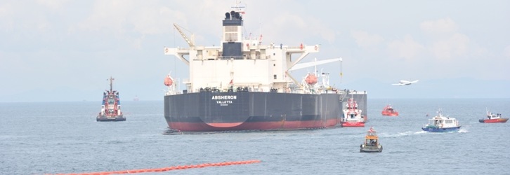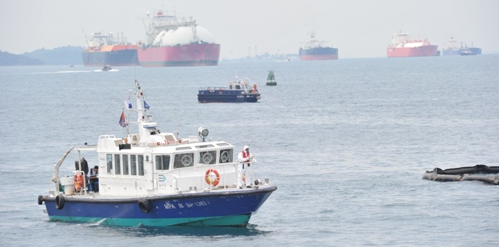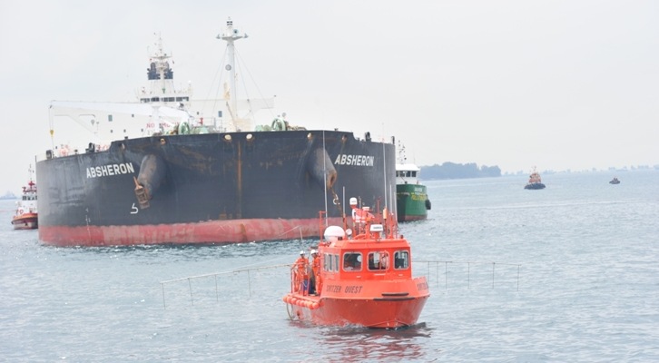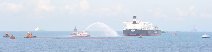 Singapore, 24 April 2015 To test and demonstrate Singapore's readiness to tackle oil and chemical spills, a multi-agency joint oil spill exercise was conducted today. Code-named JOSE 2015, the exercise was organised by the Maritime and Port Authority of Singapore (MPA) on the last day of the International Chemical and Oil Pollution Conference and Exhibition 2015 (ICOPCE), held in conjunction with the 10th Singapore Maritime Week (SMW). JOSE 2015 comprised a tabletop management exercise at MPA's Port Operations Control Centre Vista and a full scale oil and chemical spill response equipment deployment. Over 180 personnel from various agencies participated in the table top exercise and seaward exercise, located along Sudong Holding Anchorage, 4.5 km south of Jurong Island (See Annex Afor list of participating agencies) The exercise scenario involved a simulated collision between a Very Large Crude Carrier (VLCC) and a chemical tanker. The VLCC suffered damages to two cargo tanks and some 5,000 tonnes of oil was spilled. Due to the impact of the collision, the chemical tanker sustained damage to the cargo tank cover on deck. The exercise included responses to combat oil and chemical pollution from both the vessels and tested multi-agency responsiveness and co-operation. The spill response teams deployed equipment such as oil containment booms, harbour busters and specialised skimmers. In addition to the 22 anti-pollution craft, MPA also deployed an aircraft fitted with aerial dispersant spraying system to combat the spill and an Unmanned Aerial Vehicle (UAV) that had the capability to provide aerial footages for better situational awareness on the ground and to monitor the effectiveness of the clean-up operations. Mr Andrew Tan, MPA's Chief Executive, said, "Being one of the busiest ports in the world and the top bunkering port, we are reminded of the importance to be vigilant and ready to swiftly respond to any maritime incident, including oil and chemical spills. This exercise not only tests multi-agency responsiveness and co-operation, it also allows us to share best practices and leverage the latest technology to manage the spill." About 40 delegates from the International Chemical and Oil Pollution Conference and Exhibition (ICOPCE) 2015 observed the action-packed oil and chemical spill exercise today.