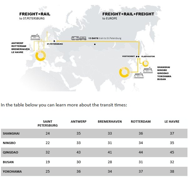 12 April 2021 MSC is pleased to announce the launch of a new intermodal solution between Asia and Europe available from today. This new offer will combine both sea and rail service departing from China, Korea and Japan to Europe, via Vladivostok and Vostochniy with further feeder connections from St Petersburg. From St. Petersburg, cargoes can be shipped directly to some of the major European hubs such as Antwerp, Bremerhaven, Rotterdam and Le Havre through our European feeder network offering an extensive coverage of ports and inland connections in the continent.