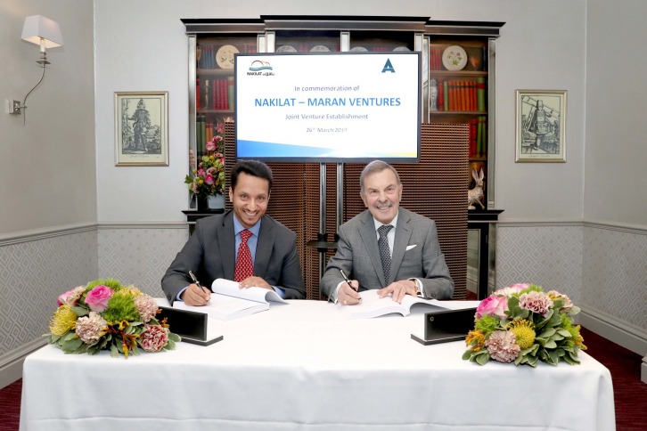 27 March 2019 Nakilat has established a new joint venture (JV), ‘Global Shipping Co. Ltd.’, with shipping company Maran Ventures Inc. (Maran Ventures). Under the agreement, Nakilat will have a 60% stake in the JV while Maran Ventures will hold the remaining 40%. With 4 LNG vessels under the new JV, the number of Nakilat vessels will effectively increase to 74, which is approximately 11.5% of the global LNG fleet in carrying capacity. Nakilat’s Chief Executive Officer Eng. Abdullah Al Sulaiti said, “This agreement is a step forward for the company as we expand our fleet with additional capacity to meet the growing international demand for clean energy. This has subsequently led to a significant increase in demand for LNG shipping, which we hope will have a positive effect on charter rates. With the 4 new vessels being managed and marketed by Nakilat, this not only affirms our global leadership in energy transportation but also bears testament to our vessel management and marketing capabilities with the world’s largest LNG fleet. Nakilat’s steady growth highlights our robust financial performance and strategic planning, which comes as part of our efforts to maximize returns for our shareholders and support Qatar’s industry leading position as the world’s top LNG exporter. Eng. Al-Sulaiti added, “We have seen a shift in terms of management and vessel technology in the industry, which we have taken into consideration. Currently under construction in South Korea, the four modern vessels each have a cargo carrying capacity of 173,400 cubic meters. They are equipped with some of the most advanced technology in the market today, with two of them being equipped with ME-GI while the other two with X-DF technology.” Chairman of Maran Ventures, Mr John Angelicoussis said, “Nakilat has been one of our strategic partners for many years and we are pleased to be strengthening our relationship with them. Through this new venture, I am confident that we will continue to provide first-class services together for all our LNG customers around the world and look forward to further collaborations in the future.”