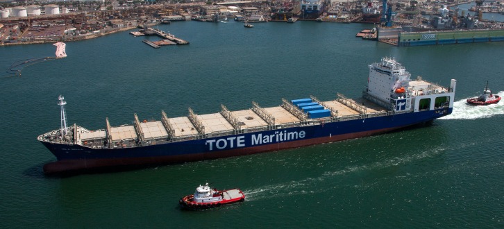 Fueled by liquefied natural gas, the containership will be the cleanest cargo-carrying ship in world. San Diego - October 16, 2015 Today General Dynamics NASSCO delivered the world’s first liquefied natural gas (LNG) powered containership, the Isla Bella, to TOTE Maritime. The ship was delivered nearly two months ahead of schedule. NASSCO is a wholly owned subsidiary of General Dynamics (NYSE: GD). As part of a two-ship contract signed in December 2012 with TOTE, the 764-foot long Marlin Class containerships will be the largest dry cargo ships powered by LNG, making them the cleanest cargo-carrying ships anywhere in the world. This groundbreaking green ship technology will dramatically decrease emissions and increase fuel efficiency when compared to conventionally-powered ships, the equivalent of removing 15,700 automobiles from the road. “Successfully building and delivering the world’s first LNG-powered containership here in the United States for coastwise service demonstrates that commercial shipbuilders, and owners and operators, are leading the world in the introduction of cutting-edge, green technology in support of the Jones Act,” said Kevin Graney, vice president and general manager of General Dynamics NASSCO. The delivery of this historic ship, also demonstrates successful collaboration between industry and regulatory bodies. TOTE, NASSCO, the American Bureau of Shipping, and the U.S. Coast Guard worked hand-in-hand from the beginning of the project to the delivery of the Isla Bella. This included collaboration during the design approval, construction and commissioning the ship to safely and effectively operate on natural gas.