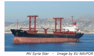The SYRIA STAR was sailing west in the Internationally Recommended Transit Corridor through the Gulf of Aden with a cargo of sugar. The SYRIA STAR, deadweight 18, 838 tonnes, is flagged to St Vincent and the Grenadines and has a predominantly Syrian crew, with 22 Syrians and 2 Egyptians.