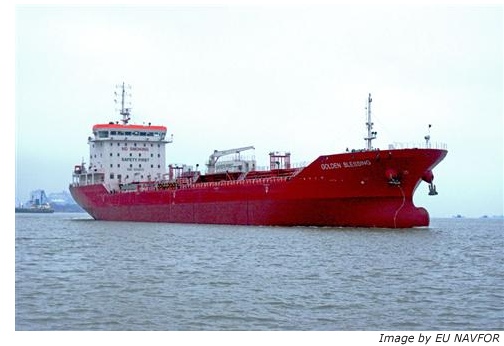 The MV GOLDEN BLESSING, a Singapore-owned chemical tanker, deadweight 14,445 tonnes, was pirated on 28 June 2010 approximately 90 nautical miles (170 kilometres) off the Somali coast. The MV GOLDEN BLESSING has a crew of 19 Chinese.