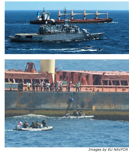 EUNAVFOR Somalia – Operation ATALANTA’s main tasks are to escort merchant vessels carrying humanitarian aid of the World Food Program (WFP) and vessels of African Union Mission in Somalia (AMISOM). EU NAVFOR also protects vulnerable vessels in the Gulf of Aden and Indian Ocean, deters and disrupts piracy. In addition, EUNAVFOR monitors fishing activity off the coast of Somalia.