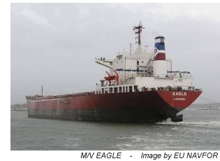 The Cypriot flagged and Greek owned M/V EAGLE, deadweight of 52,163 tonnes and a crew of 24 Filipinos was on passage from Aqabar (Jordan) to Paradip (India) when it was attacked.