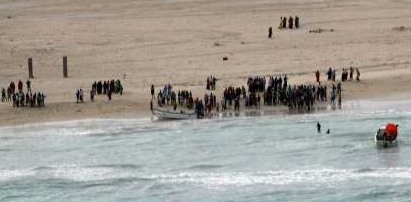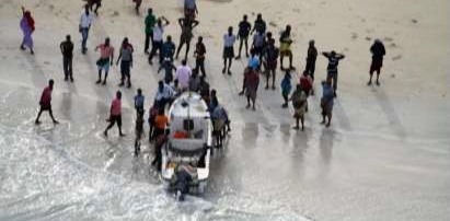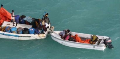 As the suspect vessels made their way through the surf to get back to the beach, approximately 80 people were seen watching from the land, with some wading out to assist the suspect pirates to drag their boats back on to the beach.