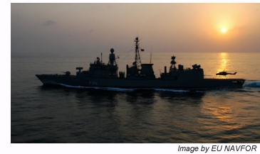 EU NAVFOR Somalia – Operation ATALANTA’s main tasks are to escort merchant vessels carrying humanitarian aid of the ‘World Food Program’ (WFP) and vessels of AMISOM, and to protect vulnerable ships in the Gulf of Aden and Indian Ocean and to deter and disrupt piracy. EU NAVFOR also monitors fishing activity off the coast of Somalia.