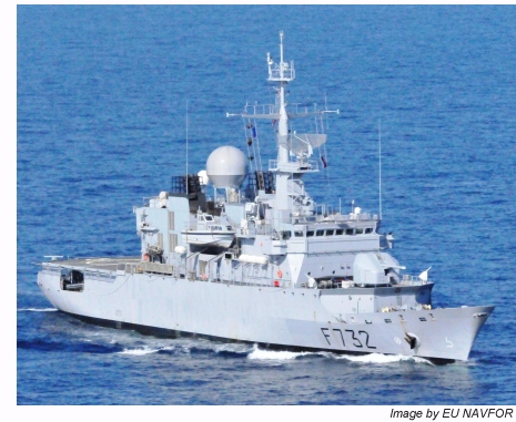 EU NAVFOR Somalia – Operation ATALANTA’s main tasks are to escort merchant vessels carrying humanitarian aid of the World Food Programme (WFP) and vessels of African Unions Mission in Somalia, AMISOM and to protect vulnerable vessels in the Gulf of Aden and Indian Ocean and to deter and disrupt piracy. EU NAVFOR also monitors fishing activity off the coast of Somalia.