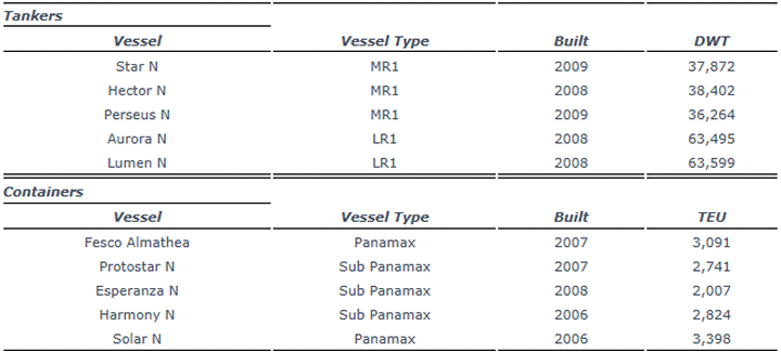 • Innovative Financing Structure • Ten vessels with FMV of approximately $218 million • Strategic Partnership with HSH for further acquisitions Navios Europe Inc. ("Navios Europe") today announced the closing of the transaction for the acquisition of ten vessels from debtors of HSH Nordbank AG ("HSH"). The ten vessels are five tankers and five container vessels with an average age of 6.0 years and a current fair market value of approximately $218 million. Five vessels have already been delivered to Navios Europe's fleet with the remaining vessels expected to be delivered by the end of 2013. Angeliki Frangou, Chairman and Chief Executive Officer, stated, "This innovative financing structure provides relief to distressed assets from bankruptcy and places them into Navios's stable ownership, thereby leveraging our economies of scale and superior technical and commercial management. Navios and HSH are committed to their excellent working relationship and look forward to doing similar deals in near future." Fleet Purchase Price The purchase price consists of $127.8 million in cash and the assumption of $173.4 million Subordinated HSH Participating Loan ("HSH Sub Loan"). The cash payment is funded by $120.4 million senior bank debt and $10 million investment from Navios Maritime Holdings Inc. (NYSE: NM) ("Navios Holdings"), Navios Maritime Acquisition Corporation (NYSE: NNA) ("Navios Acquisition") and Navios Maritime Partners L.P. (NYSE: NMM) ("Navios Partners"). The senior bank debt is secured by a first priority mortgage on the vessels and does not include any holding company guarantees from the Navios public entities. Navios Holdings, Navios Acquisition and Navios Partners will provide additional working capital ("Navios Working Capital Loans") to Navios Europe on a priority basis. The Navios Working Capital Loans will accrue interest at 12.7%. The material terms of the transaction were generally in accordance with the letter of intent signed with HSH in April 2013. Strategic Partnership HSH has agreed to provide Navios Group the opportunity to acquire more vessels at terms no less favorable than this transaction. Fleet Exhibit