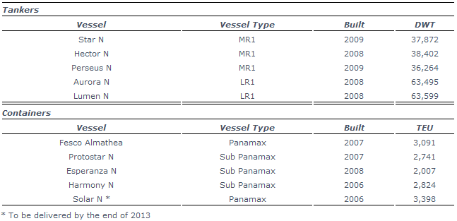 Navios Europe Inc. ("Navios Europe") announced today that it has taken delivery of four additional vessels out of the ten vessel acquisition from HSH Nordbank AG ("HSH"). Including these four vessels, Navios Europe has taken delivery of nine vessels in total. The remaining vessel is expected to be delivered by the end of 2013.