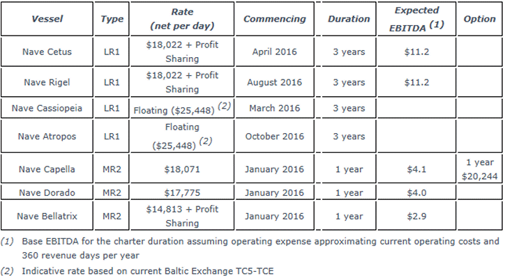 Fleet Update Navios Acquisition has contracted 67.1% of its available days for 2016. About Navios Maritime Acquisition Corporation Navios Acquisition (NYSE: NNA) is an owner and operator of tanker vessels focusing on the transportation of petroleum products (clean and dirty) and bulk liquid chemicals. For more information about Navios Acquisition, please visit our website: www.navios-acquisition.com. Navios Maritime Acquisition Corporation press release |