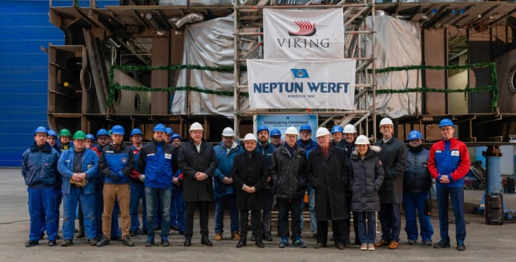 Rostock - Warnemuende, 05.12.2023 Viking and NEPTUN WERFT today laid the keel for ten new river ships. This continues the successful series of 65 ships for Viking. The company has now commissioned NEPTUN WERFT to build a further nine innovative river ships, which include one ship for the Seine and eight ships from the well-known Longship series. A further Seine ship was already commissioned in February 2023. NEPTUN WERFT will therefore build ten river ships for Viking by 2026. While the Longships are 135 metres long, the ships for the Seine are based on the "shortened" Longships Viking Kari, Viking Radgrid, Viking Skaga and Viking Fjorgyn already built for Viking. One ship for the Seine and four ships from the Longship series are to be delivered in both 2025 and 2026. Construction of the ships has now symbolically begun with the keel laying ceremony at NEPTUN WERFT. The new ships will be equipped with a hybrid system consisting of a diesel-electric drive and a battery system. This will absorb peak loads and save a considerable amount of fuel. The Longships are being designed for the first time at NEPTUN WERFT using a new PLM system, a combined solution of Catia V6 and Cadmatic. They will also feature a number of technical innovations, such as a compact system for wastewater treatment. "We are delighted to continue the series of Viking Longships with these ten vessels. With their hybrid system, the ships are among the most environmentally friendly on Europe's rivers. Their successful use on the ships already delivered was a decisive reason for Viking to once again rely on the MEYER Group for construction," says Jan Meyer, who will head NEPTUN WERFT as Chief Business Innovation Officer in the future. NEPTUN WERFT now has a well-filled order book with ten river cruise ships, two naval fuel supply vessels and parts of the METEOR IV research vessel, which extends into 2026. The MEYER Group is also planning to enter the construction of offshore converter platforms together with the Belgian company Smulders. The NEPTUN SMULDERS Engineering joint venture is currently being set up for this purpose. These platforms will also be built at NEPTUN WERFT in the future. The shipyard's team continues to grow for these unique maritime projects. Job vacancies can be found at meyercareer.com.