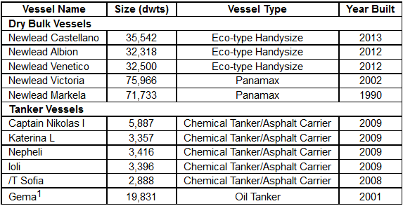 The 1990-built, 71,733 dwt, panamax bulk carrier Newlead Markela Fleet Update The following table details NewLead's fleet as of February 24, 2015:
