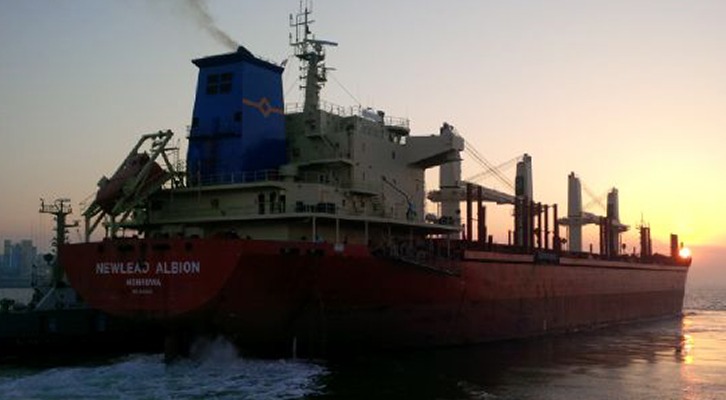 The 2012-built dry bulk eco-type Handysize vessel of 32,318 dwt "Newlead Albion". Image by NewLead Holdings Ltd. |