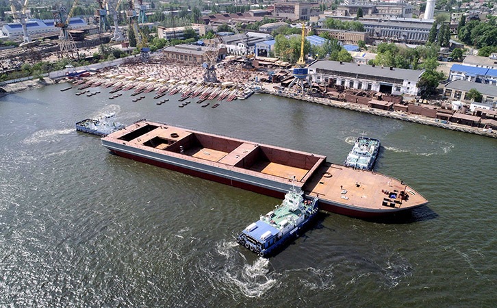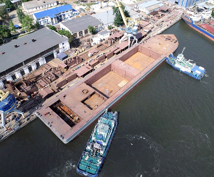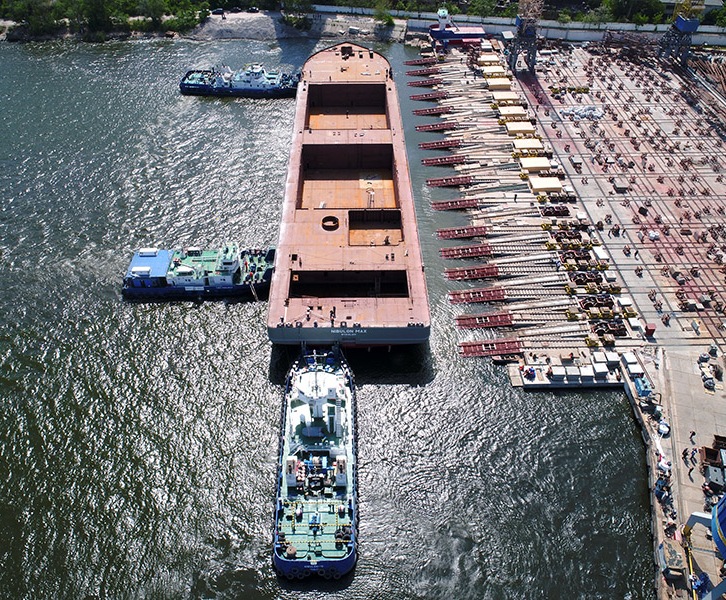 27 May 2019 On May 18, 2019, NIBULON shipbuilding and repair yard launched its first 140-m vessel, a unique NIBULON MAX vessel. This is the first vessel with such sizes, which is being built at NIBULON shipbuilding and repair yard, and the longest crane vessel of “river-sea” class over the last 25 years of independence. The vessel is constructed with the financial support of the International Finance Corporation and the European Bank for Reconstruction and Development, as well as the European Investment Bank, thanks to cooperation with which the conditions for launching this vessel were created, namely the large-scale reconstruction of the company’s shipyard was performed. “On December 5, 2013, at the beginning of the Revolution of Dignity, we keel-laid the first vessel at our shipbuilding and repair yard in Mykolaiv. And today, in the first days of work of the new President, we have launched the longest crane vessel of “river-sea” class over the last 25 years of independence. This is not only the longest vessel, but also a complex engineering object. The 75th vessel of NIBULON’s fleet has been launched. What are you thinking about and what do you feel on such days, moments… You get pleasure from the fact that there is such a high result that you have achieved. You think of the fact that there are goals that you attain and they prompt you to set yourself new goals that seem inaccessible. But you reach them and set yourself a higher goal. It is also important that the realization of our plans can always be seen. For example, this is the most modern fleet in Ukraine”, commented on this extraordinary event NIBULON’s General Director Oleksiy Vadaturskyy. The prerequisites for the construction of such a high-capacity vessel for the company’s fleet have been for a long period of time. According to Oleksandr Taranovskyi, deputy director of NIBULON’s shipping company for economy, the intensive expansion of NIBULON’s network of river transshipment terminals from year to year provides for an increase in the company’s cargo transported by river; this also increases the needs for loading and unloading operations in the outer and inner roads of Mykolaiv Sea Port. "Our company has long had a need for its own crane fleet. In the outer roads of Mykolaiv Sea Port there were three floating vessels of the company, namely St. Mykolai, Nibulonivets and Nibulonivets-2. But the new high-capacity NIBULON MAX will allow us, by increasing the volume of transshipment at sea, not only to fully cover our needs and to avoid the involvement of third-party floating cranes, but also enable additional revenues from providing services to other companies. Thus, this vessel will increase the annual volumes of cargo handling by the fleet by 2-3 million tons per year and increase volumes of cargo handling directly by the company’s fleet to 4-5 million tons per year. This vessel will also make it possible to flexibly use the river cargo fleet, being a storage vessel during the absence of foreign-going vessels”, he explained.