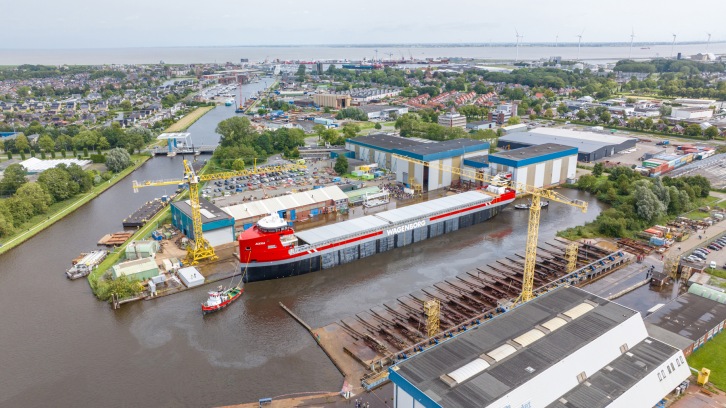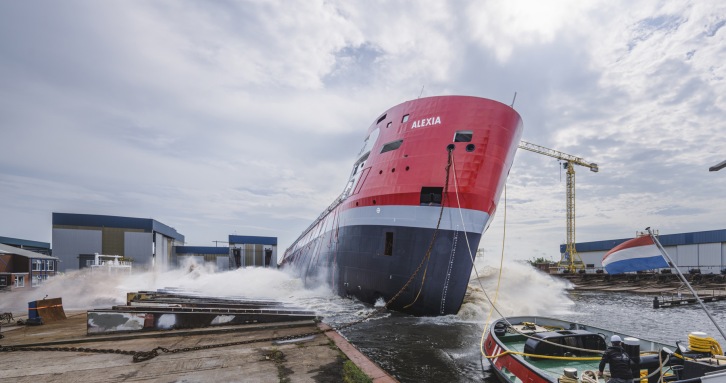 23 August 2024 Today, the MV Alexia was launched successfully at our shipyard. This new building is the successor of the award-winning Egbert Wagenborg and her sisters Máxima and Amalia. The MV Alexia type is the fourth vessel in the EasyMax series in the Wagenborg fleet according to our new energy efficiency targets. The MV Alexia was christened during Delfsail by Her Majesty Queen Máxima in presence of employees and guests. For this ceremony, Queen Máxima performed the world’s first name giving and christening ceremony by drone. By pushing a button this drone flew to our shipyard, where this EasyMax vessel was nearing completion and christened yard number 853 ‘Alexia’.