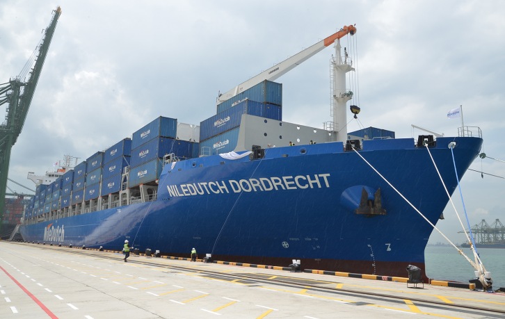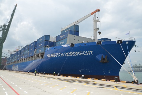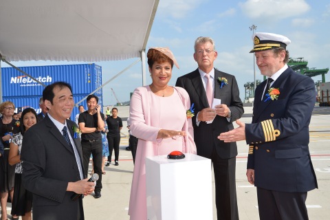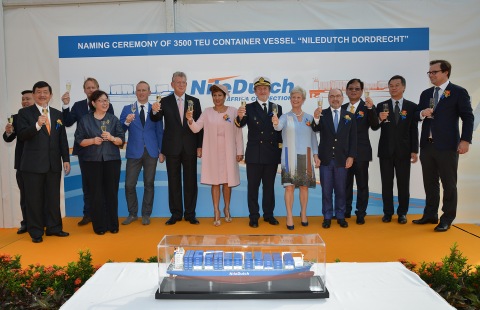Naming Ceremony January 2015 The naming ceremony of the second of four NileDutch new build vessels, the MV NileDutch Dordrecht, was held on 23 January 2015 at PSA Singapore Terminals. Eva Jongschaap, spouse of Jan Jongschaap, one of NileDutch’s founders, was the ship's godmother. The ceremony was attended by representative of the Dutch embassy in Singapore, port authorities and NileDutch business partners and customers. NileDutch is expanding its fleet with four custom-designed container vessels to offer an improved service to key markets in West Africa. These vessels will be registered in the Netherlands and fly the Dutch flag. Vessel design optimised for West Africa The dimensions and deck equipment of the four new vessels are tailored to the ports they will serve in West Africa. This will enable NileDutch to serve this key market even better. Each vessel has a capacity of 3510 TEU (1530 in the holds and 1980 on the hatch covers). The efficient 20,000 kW engines will ensure operational efficiency and a low environmental impact. The vessels have a length over all of 224 metres, beam (width) of 34.8 metres and draft of 12.5 metres. The other two vessels will be delivered later this year. The new builds will operate on NileDutch's busy West Africa - Far East rotation. About NileDutch NileDutch Africa Line BV is one of the world's top-25 container shipping companies. The company provides liner services between West African ports and Europe, South Africa, South America and Asia. NileDutch has been operating for over 30 years and has a worldwide office network and a particularly dense network in West Africa. Its local presence and commitment to this region enable NileDutch to respond quickly to market demands and offer an efficient service. City of Dordrecht The MV NileDutch Dordrecht was named after Dordrecht, a historic city in the South of the Netherlands. The written history of Dordrecht goes back to 1120, making it the oldest city in the Netherlands. For a long time Dordrecht was an important centre of commerce due to its location on three rivers. Many important events in the history of the Netherlands are connected to the city. Dordrecht has a beautiful historic town centre with many impressive buildings. There is an attractive national park, De Biesbosch, close to the city. The remaining new NileDutch vessels will also be named after European cities. Niledutch press release