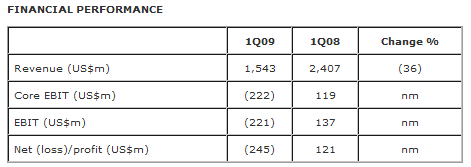 “During the first quarter, a range of significant business adjustments were undertaken to better align the Group’s overall network and cost structures with reduced market demand. Further cost saving initiatives have been set in motion and will be implemented as the year progresses,” said Mr Widdows. 1Q09 revenue from the Container Shipping business was 36% lower than in 1Q08 at US$1.29 billion. Container Shipping reported a Core EBIT loss of US$237 million for the quarter. Globally, APL carried a total of 481,000 FEU (forty-foot equivalent unit) in 1Q09, 27% down from the same period of last year, as volumes declined in all trade lanes. Container volumes averaged 32,600 FEU per week over the ten week period from 27 December 2008 to 6 March 2009, and averaged 38,888 FEU per week during the four weeks from 7 March to 3 April 2009. In Container Shipping, average revenue per FEU decreased by 16% year-on-year. This was primarily due to a combination of lower bunker recovery and freight rate pressures, particularly in the Asia-Europe and Intra-Asia trade lanes. The Logistics and Terminals business units made positive Core EBIT contributions for the quarter. APL Logistics reported a 34% decrease in 1Q09 revenue, to US$241 million, and Core EBIT of US$14 million, 18% lower than for the same period last year. Mr Widdows said: “Logistics recorded a substantial reduction in volumes and revenues for the quarter, reflecting global economic uncertainty and declining trade activity. Despite this, the Logistics business improved its Core EBIT Margin to 5.8% through continued disciplined cost management and a focus on revenue quality.” In the Terminals business segment, 1Q09 revenues were US$112 million, 23% down on 1Q08. Core EBIT was US$4 million, compared with US$12 million in the same period of 2008. “Our Terminals activities were negatively impacted by the industry-wide decline in global container trade,” said Mr Widdows. Mr Widdows concluded: “NOL’s balance sheet remains strong with net gearing of 0.45 times as at 3 April 2009.” NOL's outlook statement said: "For the rest of the year, NOL anticipates a continuation of adverse business operating conditions. NOL reiterates that it expects to post a significant full year loss. The Group will continue to focus on improving asset utilisation, yields and productivity." NOL |