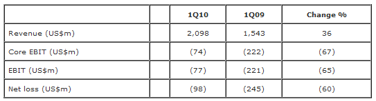 “We began to see more positive movement in the first quarter on rates and volumes across our major trade lanes,” said APL President Eng Aik Meng. Rates lagged in some trade lanes, in large part due to a legacy of contracts that were signed during the downturn of 2009, said Mr. Eng. Most of these contracts will expire in May and are being renegotiated. Revenue for APL Logistics increased 23% in 1Q10 from the first quarter of 2009 to US$296 million. Core EBIT increased 7% to US$15 million. APL Logistics volumes increased across many of its services during the first quarter and freight rates were higher in the Forwarding business. “In a gradually improving economy, we witnessed encouraging improvements in revenues, driven largely by strengthening international product flows and a continuing recovery in land transport demand,” said APL Logistics President Jim McAdam. NOL’s Terminals business reported a 40% year-on-year increase in revenue during 1Q10 to US$157 million. Core EBIT improved to US$18 million from US$4 million a year ago. Volumes increased 42%. “The integration of our container shipping and terminal operations is vital to the way we manage customers’ supply chains, and is at the core of our service delivery capability,” said Mr. Widdows. Accordingly, from 2Q2010, NOL will present financial results of the two segments as one unit. “It is also our intention to continue to grow our portfolio of terminal investments to further support APL’s Container Shipping business,” Mr. Widdows added. NOL’s outlook statement said: “At its FY09 year-end results announcement, NOL indicated improvements in volumes and freight rates in its principal markets. Since that time, the operating environment has improved further. If this trend continues, NOL expects to return to profitability for the full year. However, several risk factors remain – including rising fuel costs, the global economy and the relationship between supply and demand. The Group will continue to press on with its cost savings, productivity and yield management programs.” Full report at: www.nol.com.sg NOL |
