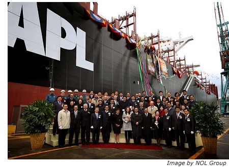 Wang Yi, President, Chongqing Foreign Trade and Economic Relations, attended the christening of the APL Chongqing. He formulates development strategies for the city’s import and export business, formulates foreign investment regulation there and is responsible for economic cooperation with foreign enterprises. Lisa Wang, an engineering consultant from Chongqing, served as Godmother for the APL Chongqing and broke a ceremonial champagne bottle over the hull. Kathy Koo, Chairwoman of Seoul, Korea -based Pantos Logistics Co., LTD, will be Godmother for tomorrow’s christening of the APL Gwangyang. NOL said its two new ships will replace older and smaller vessels in its fleet. With greater cargo capacity, improved design and more efficient engines, the APL Chongqing and APL Gwangyang should reduce operating costs. They’ll also reduce the environmental impact of container shipping. The new vessels will consume less fuel and emit less exhaust than the ships they replace. Because the ships also have greater cargo capacity, they’ll reduce the amount of emissions-per-container carried. The company said both vessels will be deployed in the trade between Asia and Europe. About NOL Neptune Orient Lines (NOL) is a Singapore-based global container shipping and logistics company. Its container shipping arm, APL, provides world-class container shipping and terminal services and intermodal operations supported by leading-edge IT and e-commerce. Its logistics business, APL Logistics, provides international, end-to-end logistics services and solutions, employing the latest IT and data connectivity for maximum supply chain visibility and control. NOL Web site: www.nol.com.sg NOL press release |