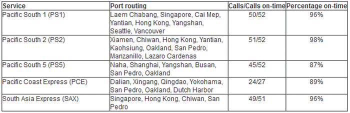 The report measures reliability on the five Asia-to-US West Coast services operated exclusively by APL vessels.