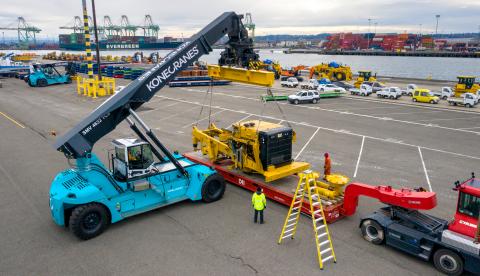 Reach stacker lifting cargo at a breakbulk terminal. Image by The Northwest Seaport Alliance.