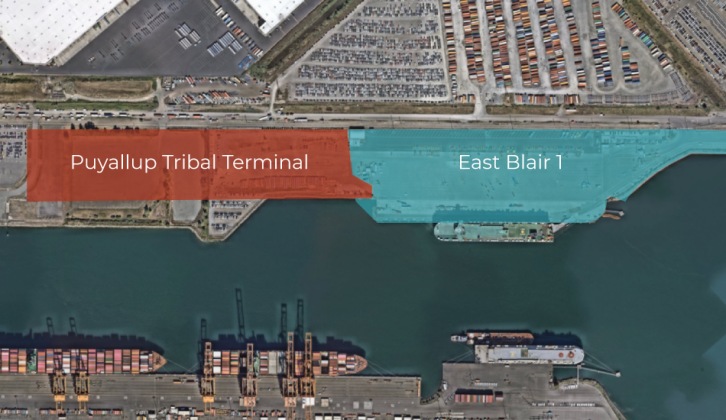 March 17, 2025 In a historic first, the Puyallup Tribe and The Northwest Seaport Alliance (NWSA) have joined forces to expand the region's shipping capacity through construction of a new berth on the East Blair Waterway. The move expands current berth (pier) capacity for the world's largest shipping lines, positioning the Seattle/Tacoma gateway to gain market share and increase economic activity across the region. Under the terms of a memorandum of understanding (MOU), the Tribe and the NWSA intend to construct a new pier adjacent to one on the East Blair Waterway and to jointly market and operate both facilities. The NWSA is a marine cargo operating partnership of the Port of Seattle and Port of Tacoma and is the seventh-largest gateway in North America. The new pier has the working name "Puyallup Tribal Terminal." "No Tribe has ever had this historic an opportunity to partner with a port, and we are excited to enter this business relationship with The Northwest Seaport Alliance and continue to expand the Puyallup Tribe's ventures on our homelands," said the Puyallup Tribal Council, the Puyallup Tribe's governing body. "Not only will this be a benefit to the NWSA, Port and region, but it will also allow future opportunities for our Tribal Members." "This groundbreaking partnership with the Puyallup Tribe signifies a new era of collaboration and innovation. By working together, we can leverage our collective strengths to enhance our competitiveness, attract new business, and further solidify our position as a leading gateway for global trade. This partnership demonstrates our commitment to sustainable growth and creating more economic opportunities for the entire region for years to come," stated John McCarthy, Port of Tacoma Commission President and The Northwest Seaport Alliance Co-Chair. The Tribe intends to build a new pier on approximately 22 acres of Tribal property adjacent to the existing East Blair Terminal 1 (EB1). The EB1 terminal is operated by The Northwest Seaport Alliance and receives roll-on, roll-off (RoRo) and breakbulk cargo. Primary imports to EB1 are automobiles and heavy equipment which are driven off vessels and then readied for transport and sale across North America. The new Tribal pier will feature comparable capabilities to the existing pier including on dock rail and featuring carbon reduction technology to minimize localized pollution impacts as well as global warming impacts. The NWSA will offer technical support to ensure consistency and efficiency between the piers. The Tribe's pier development and support acres will strengthen both groups' position in the global marketplace. A two-berth facility with ample cargo handling acreage will support existing customers, expand job opportunities and help attract new business.