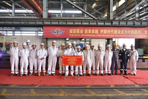28/06/2023 On June 28, 2023, the steel cutting of two units of 210,000 DWT LNG DUAL FUEL Bulk Carriers bearing builder's hull nos.0120843 and 0120844 has been carried out successfully by New Times Shipbuilding Co., Ltd. Our Manager of Production Dept. Mr. Chen Yuefeng, the representatives from Himalaya Site Manager Mr. Davor Radic and representative from ABS Classification Society attended and witnessed this event.