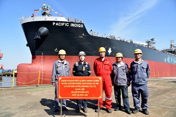 28 April 2025 On April 26, 2025, the launching ceremony of one 50,000 DWT Chemical/Product Oil Tanker bearing builder's hull no.0405056 has been carried out successfully by New Times Shipbuilding Co., Ltd. The representatives from EPS Site Office, ABS classification society and shipyard attended and witnessed the ceremony together.