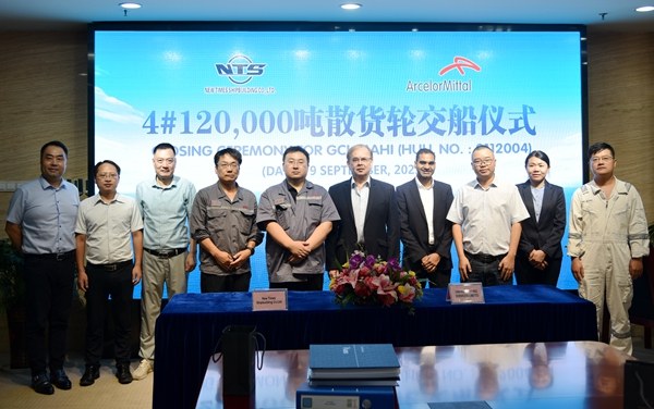 21/09/2023 On September 19, 2023, the closing ceremony for 4# 120,000 DWT Bulk Carrier with Hull No.0112004 was held at the meeting room on 8th floor of New Times Office Building. Our Executive Deputy General Manager Mr. Zhang Yuyong, Deputy General Manager & Executive Director Mr. Yuan Heng and the owner's representative were present. The vessel was smoothly and successfully delivered by us and accepted by the Owner.