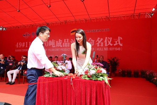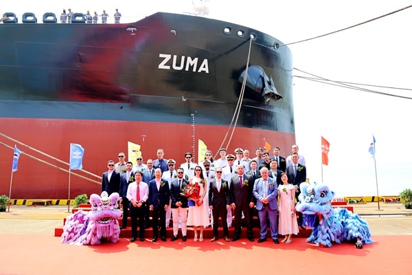 16/7/2025 On 14 July, 2025, we held naming ceremony for 49# 115,000 DWT Crude/Product Oil Tanker bearing builder's hull no.0311549. Our CEO Mr. Liu Haijin, Executive Deputy General Manager Mr. Zhang Yuyong, General Manager Assistant Mr. Xu Zhenyu, the representative from TMS Tankers Ltd. Mr. Evangelos Pelekanos, LR Foreign Ship-Owners Team Manager Mr. Dimitrios Chalas and other VIP guests attended this ceremony. Godmother Mrs. Zannia Sevi named the vessel for "ZUMA".