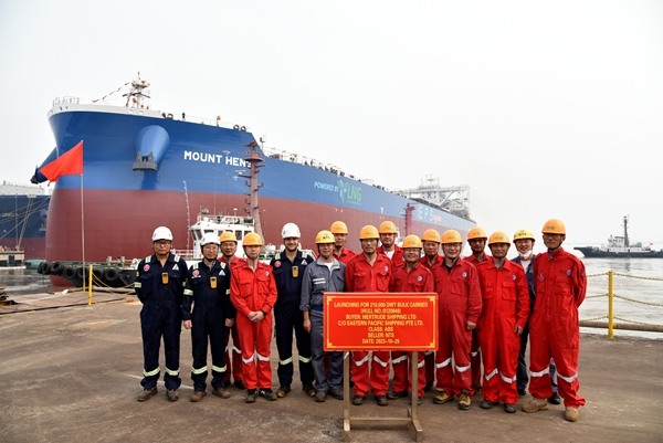26/10/2023 On October 25, 2023, the launching ceremony of one 210,000 DWT Bulk Carrier bearing builder's hull no.0120848 has been carried out successfully by New Times Shipbuilding Co., Ltd. Our Chairman Mr. Yuan Kaifei, CEO Mr. Liu Haijin, Executive Deputy General Manager Mr. Zhang Yuyong, Deputy General Manager & Executive Director Mr. Yuan Heng, the representatives from EPS Site Office and ABS classification society attended and witnessed the ceremony together.