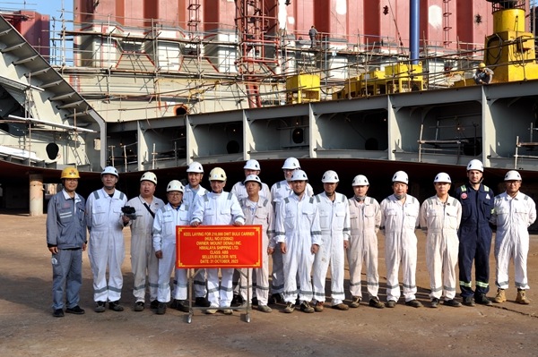 1/11/2023 On October 31, 2023, the keel laying of 42# 210,000 DWT LNG dual fuel Bulk Carrier with Hull No.0120842 has been carried out successfully by New Times Shipbuilding Co., Ltd.. The representatives from Himalaya Site Team and ABS classification society attended and witnessed this event.