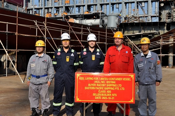 1/11/2023 On October 31, 2023, the keel laying of one 7000 TEU Container Vessel bearing builder's hull no.0207004 has been carried out successfully by New Times Shipbuilding Co., Ltd.. The representatives from EPS Site Team and ABS classification society attended and witnessed this event.