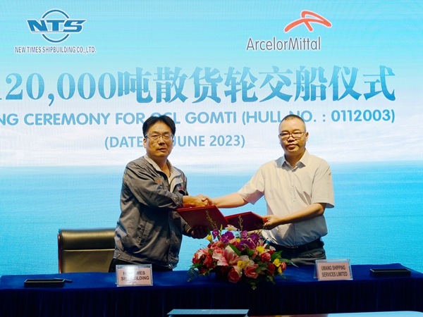 04/07/2023 On June 30, 2023, the closing ceremony for 3# 120,000 DWT Bulk Carrier with Hull No.0112003 was held at the meeting room on 8th floor of New Times Office Building. Our Executive Deputy General Manager Mr. Zhang Yuyong and the owner's representative were present. The vessel was smoothly and successfully delivered by us and accepted by the Owner.