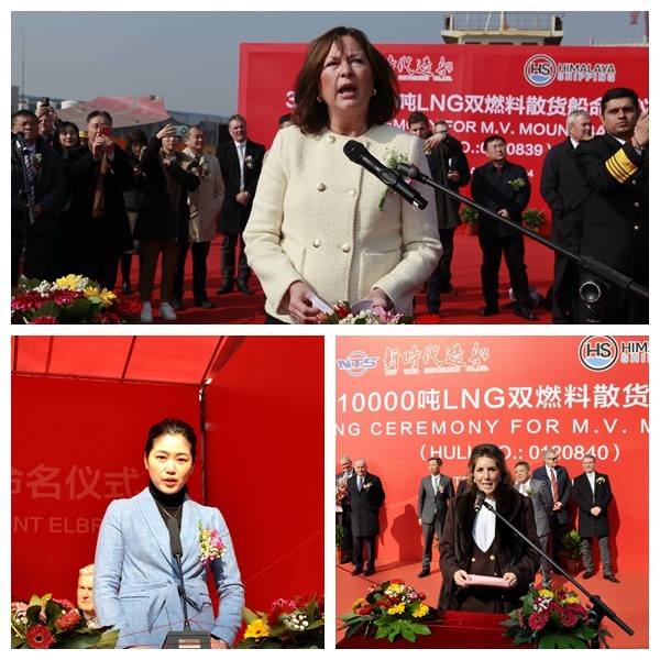 Images by New Times Shipbuilding Co. Ltd. Godmother Mrs. Berit Hauge named the vessel 0120839 for "Mount Bandeira". Godmother Mrs. Cristina Villarreal Fraile named the vessel 0120840 for "Mount Hua". Godmother Ms. Mina Iizawa named the vessel 0120841 for "Mount Elbrus".