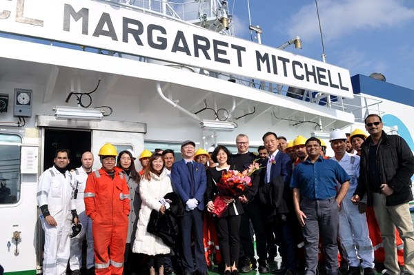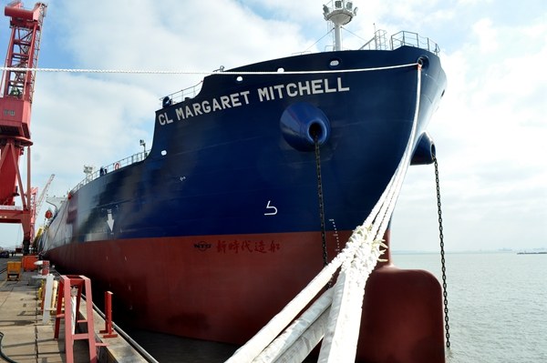 18/1/2024 On January 15, 2024, we held naming ceremony for one 50,000 DWT Product Oil/Chemical Tanker (IMO Type 2) with Hull No.0405035. Our CEO Mr. Liu Haijin, Executive Deputy General Manager Mr. Zhang Yuyong, Secretary of the Discipline Inspection Commission of Shandong Shipping Corporation Mr. Jia Qingge, Chariman of Shandong Shipping Tanker Co., Limited Mr. Xu Tao and the representatives from CDB Leasing (International) Co., Ltd. attended this ceremony. Godmother Mrs. Zhang Yanli named the vessel for "CL MARGARET MITCHELL".