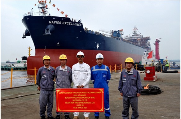 4 June 2024 On May 25, 2024, the launching of one 50,000 DWT Product Oil/Chemical Tanker bearing builder's hull no.0405051 has been carried out successfully by New Times Shipbuilding Co., Ltd.. The representatives from shipyard, N8 Site Manager Mr. Kumar together with the representatives from KR classification society attended and witnessed this event.