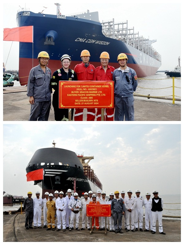 28 August 2024 On August 26, 2024, the launching ceremony of one 7000 TEU Container Vessel bearing builder's hull no.0207007 and one 8100 TEU Container Vessel bearing builder's hull no.0208101 has been carried out successfully by New Times Shipbuilding Co., Ltd.