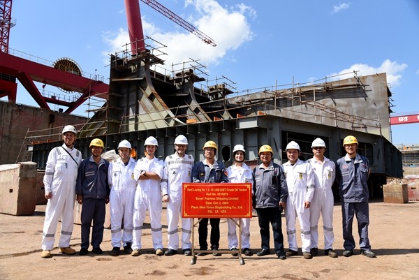 8 October 2024 On October 2, 2024, the keel laying of two units of 157,000 DWT Crude Oil Tankers bearing builder's hull nos.0315879 and 0315880 has been carried out successfully by New Times Shipbuilding Co., Ltd. The representatives from Polembros Site Office, LR classification society and shipyard attended and witnessed the ceremony together.