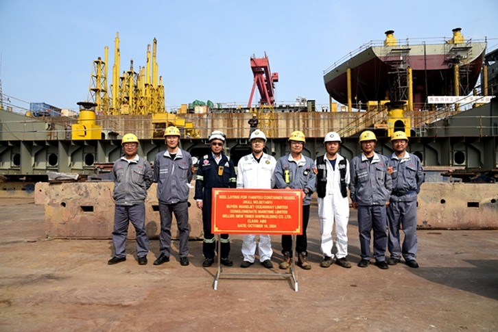 15 October 2024 On October 10, 2024, the keel laying of one 11400 TEU Container Vessel bearing builder's hull no.0211401 has been carried out successfully by New Times Shipbuilding Co., Ltd. The representatives from the shipyard, the Owner CONGLOMERATE MARITIME LIMITED together with the representatives from ABS classification society attended and witnessed this event.